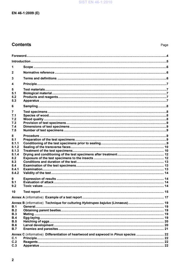 Part 2: Ovicidal effect (laboratory method) EN 46 consists of two parts to enable preventive action of wood preservatives, against recently hatched larvae of Hylotrupes bajulus, which are intended to be applied by surface treatment; Part 1 is required to determine the larvicidial effect of preservatives and Part 2 is required to determine the ovicidal action of the preservatives after egg-laying of young females. Significant technical differences between this document and EN 46-1:2005 are as follows: a)