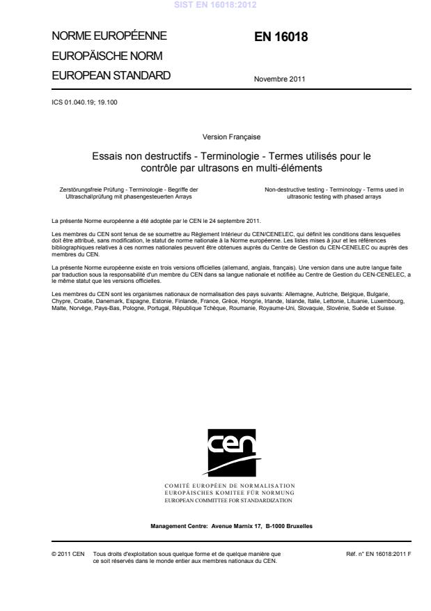 Essais non destructifs - Terminologie -Termes utilisés pour le contrôle par ultrasons en multi-éléments Diese Europäische Norm wurde vom CEN am 24. September 2011 angenommen.