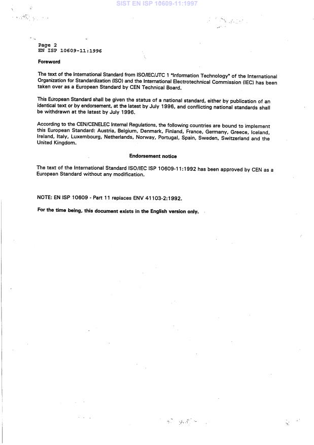 EN ISP 10609-11:1996 is classified under the following ICS (International Classification for Standards) categories: 35.100.05 - Multilayer applications. The ICS classification helps identify the subject area and facilitates finding related standards.