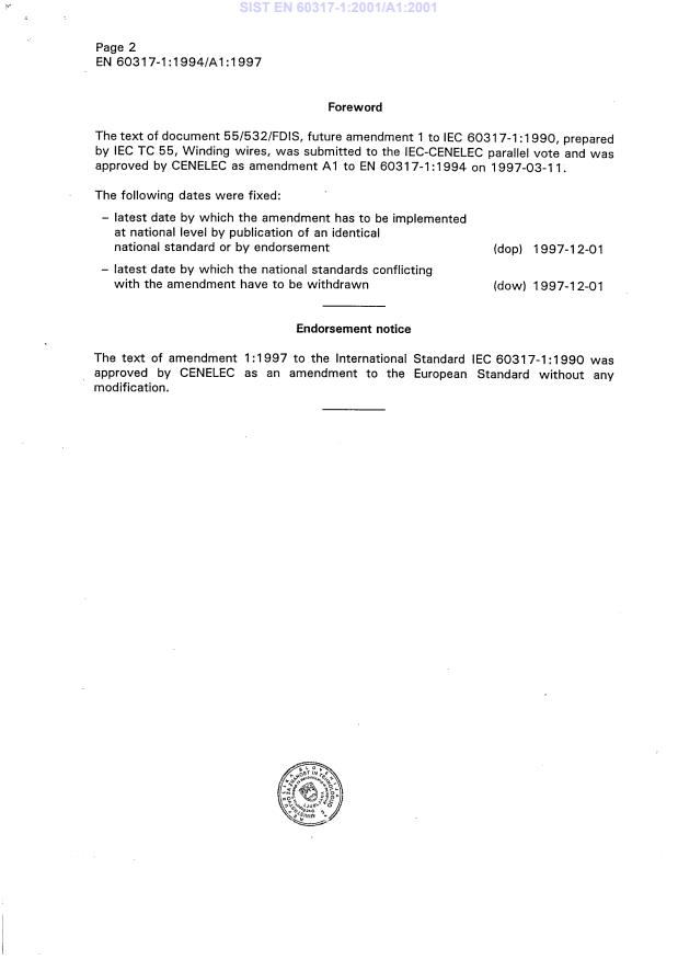 Ta slovenski standard je istoveten z: EN 60317-1:1994/A1:1997