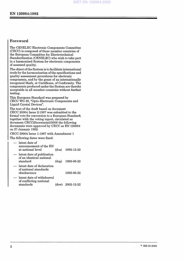 EN 120004:1992 is a standard published by CLC. Its full title is "Blank Detail Specification: Ambient rated photocouplers with phototransistor output". This standard covers: Supersedes CECC 20 004 Issue 2:1987 and A1 * TC 86D disbanded at 105 BT