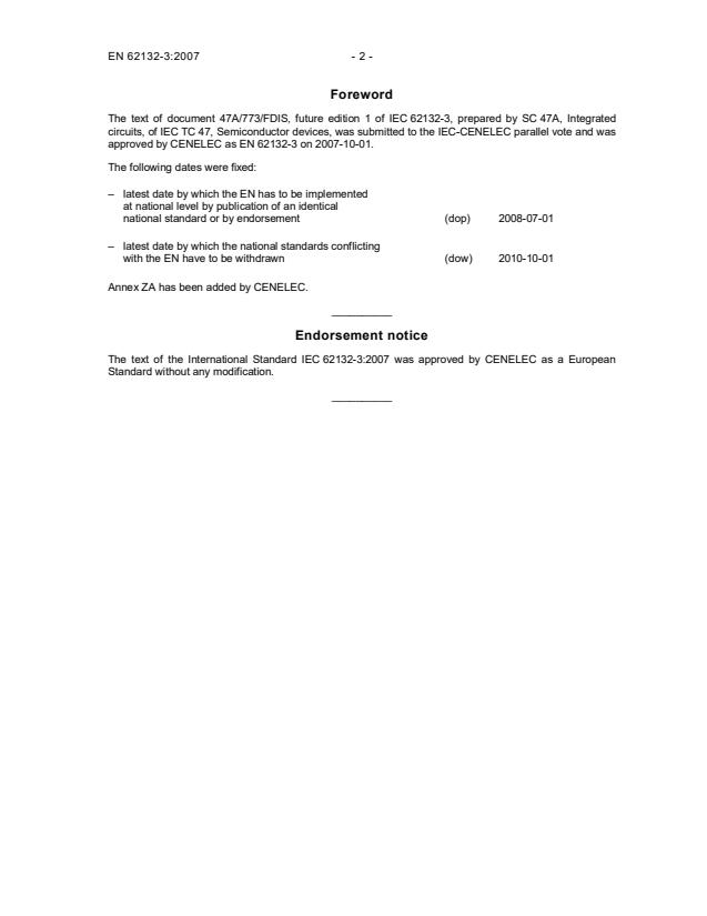 2010-10-01 Annex ZA has been added by CENELEC. __________ Endorsement notice The text of the International Standard IEC 62132-3:2007 was approved by CENELEC as a European Standard without any modification. __________