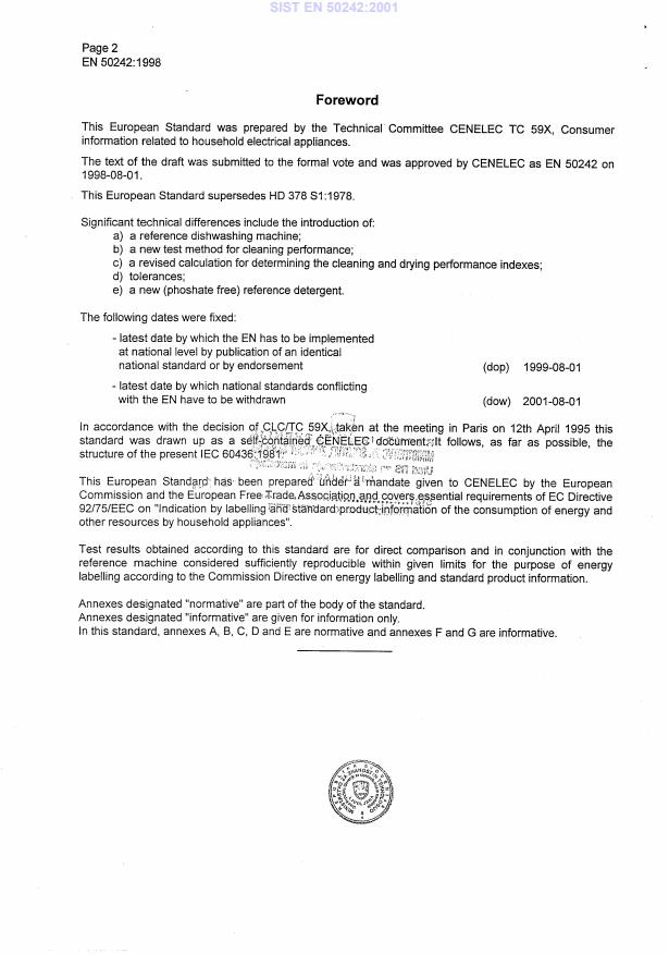 EN 50242:2008 - Electric dishwashers for household use - Methods for measuring the performance - Effective Date