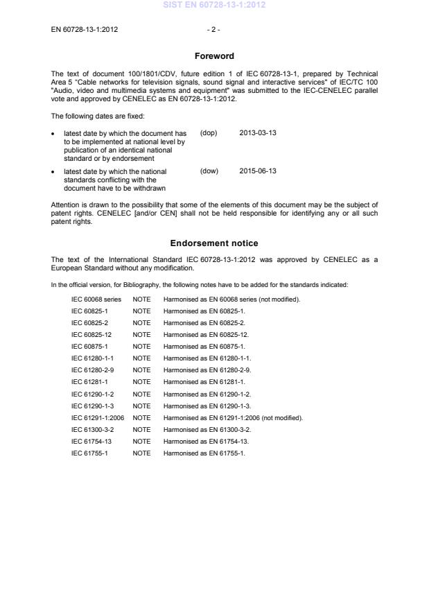 vote and approved by CENELEC as EN 60728-13-1:2012.
