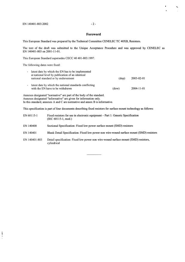 Supersedes CECC 40 401-803:1997 * Superseded by EN 140401-803:2007
