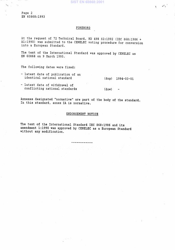 Ta slovenski standard je istoveten z: EN 60868:1993