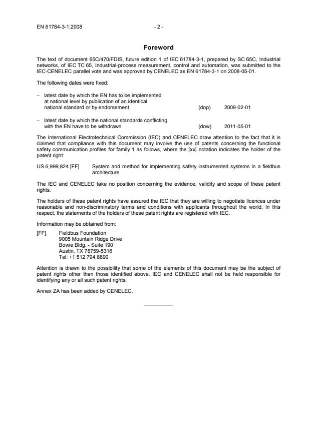 IEC-CENELEC parallel vote and was approved by CENELEC as EN 61784-3-1 on 2008-05-01.
