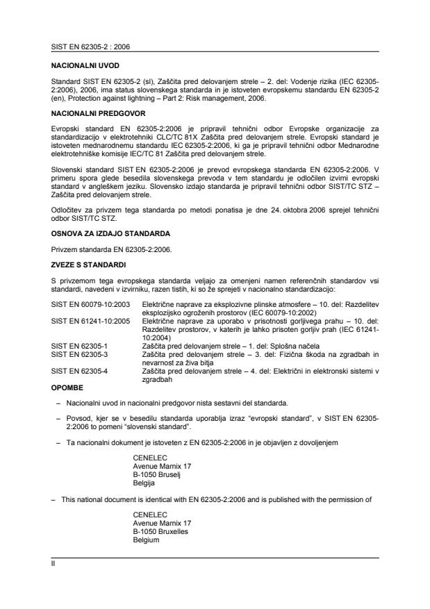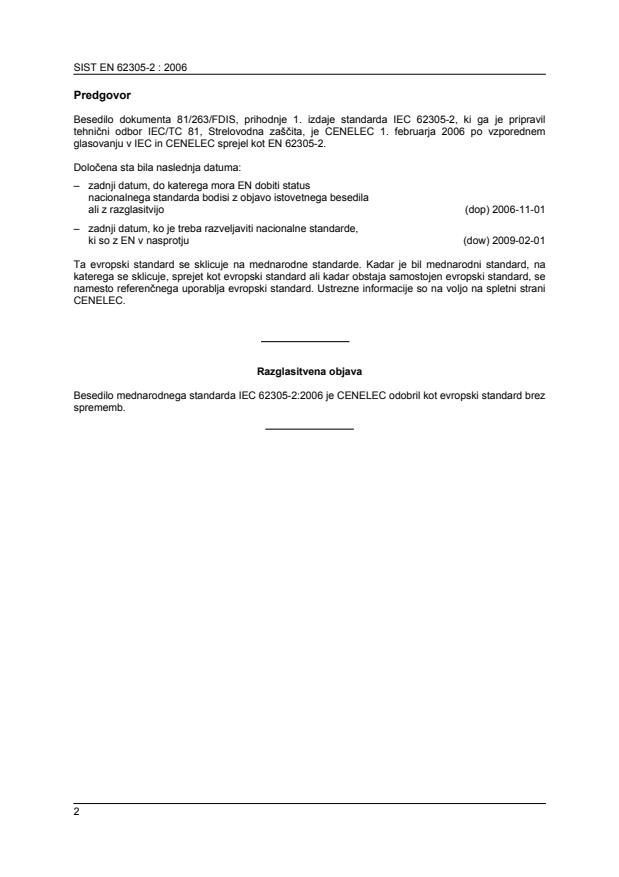 Standard je založil in izdal Slovenski inštitut za standardizacijo. Razmnoževanje ali kopiranje celote ali delov tega dokumenta ni dovoljenoReferenčna številkaSIST EN 62305-2:2006(en)ICS91.120.40