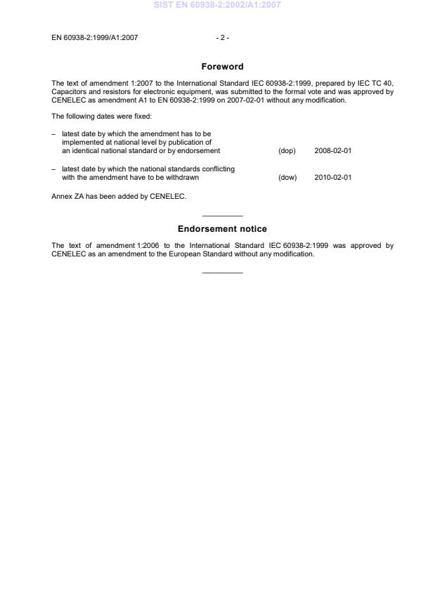 Ta slovenski standard je istoveten z: EN 60938-2:1999/A1:2007