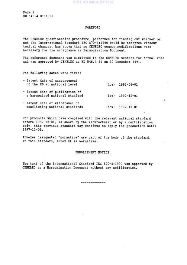 - IEC 870 series (telecontrol and telemetering standards) - HD 546.4 S1:1992 is identical to IEC 870-4:1990.