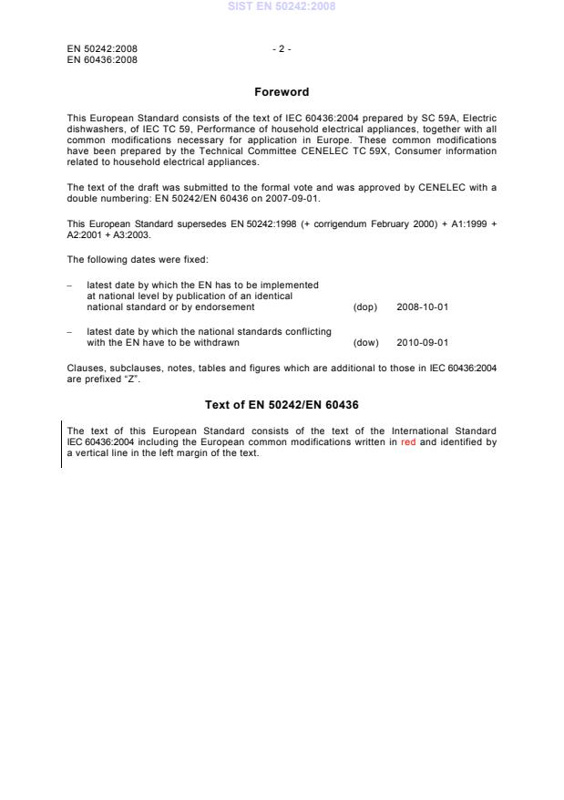EN 50242:2008 is a standard published by CLC. Its full title is "Electric dishwashers for household use - Methods for measuring the performance". This standard covers: This European Standard applies to electric dishwashers for household use that are supplied with hot and/or cold water. The object is to state and define the principal performance characteristics of electric dishwashers for household use and to describe the standard methods of measuring these characteristics. This standard is concerned neither with safety nor with performance requirements.