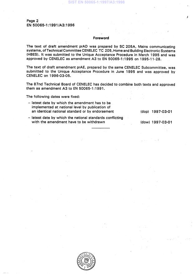 Ta slovenski standard je istoveten z: EN 50065-1:1991/A3:1996