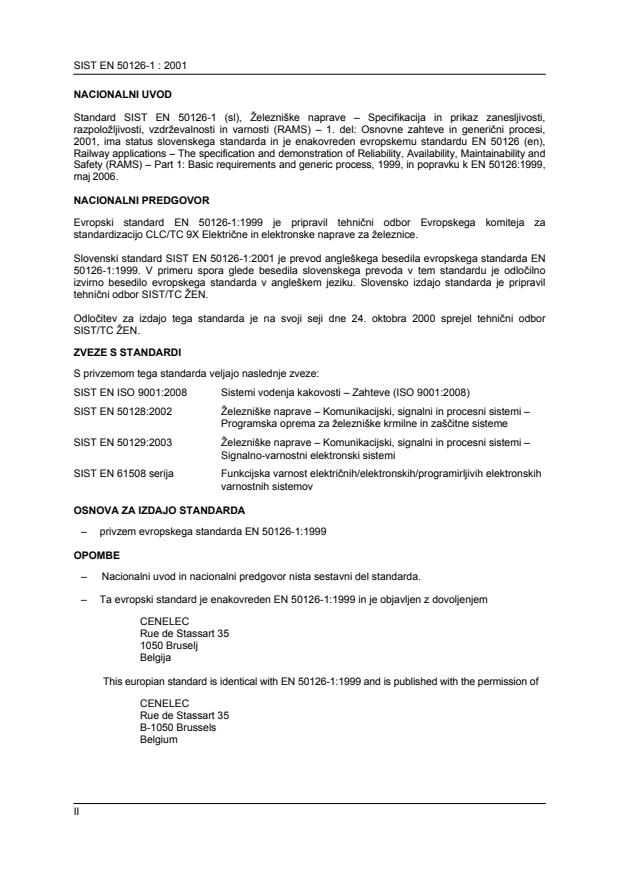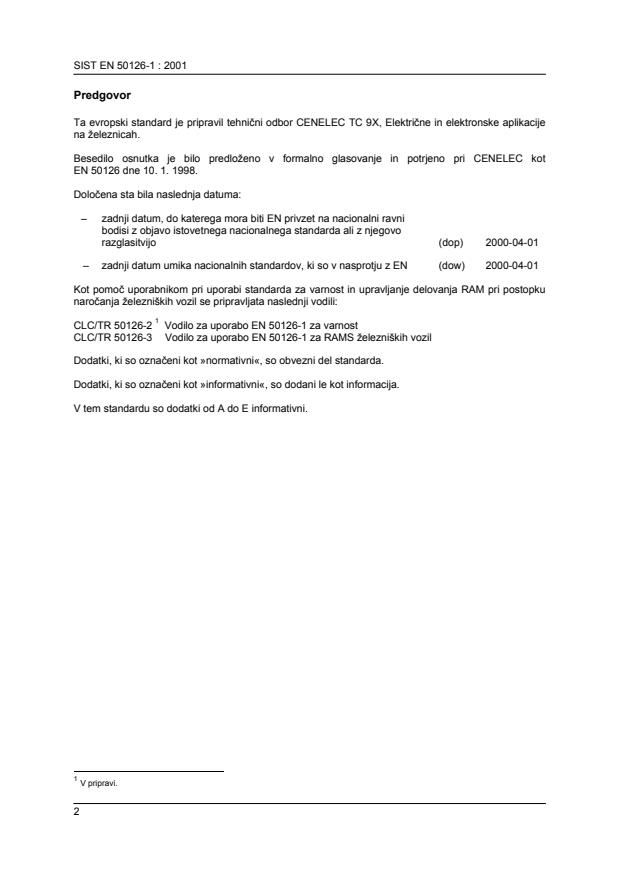 Ta slovenski standard je istoveten z: EN 50126-1:1999