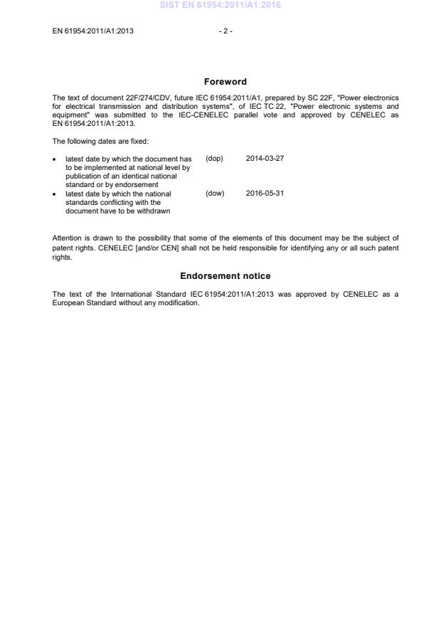 The text of document 22F/274/CDV, future IEC 61954:2011/A1, prepared by SC 22F, "Power electronics