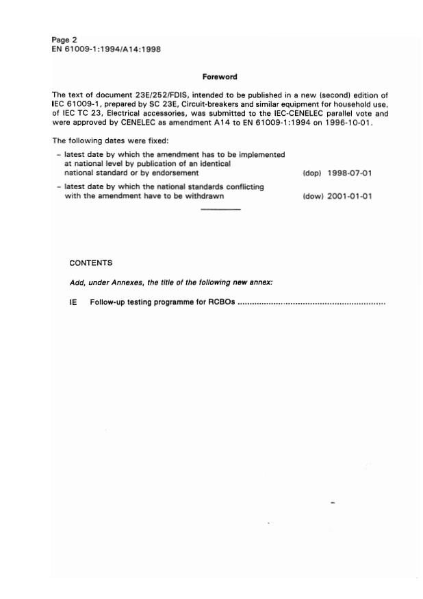 EN following parallel vote on 23E/246/FDIS & 23E/252/FDIS, ratified by CLC as A2 & A14 and published by IEC as a new edition * Superseded by EN 61009-1:2004