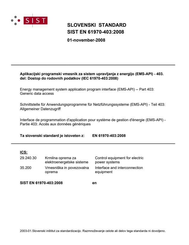 Ta slovenski standard je istoveten z: EN 61970-403:2008