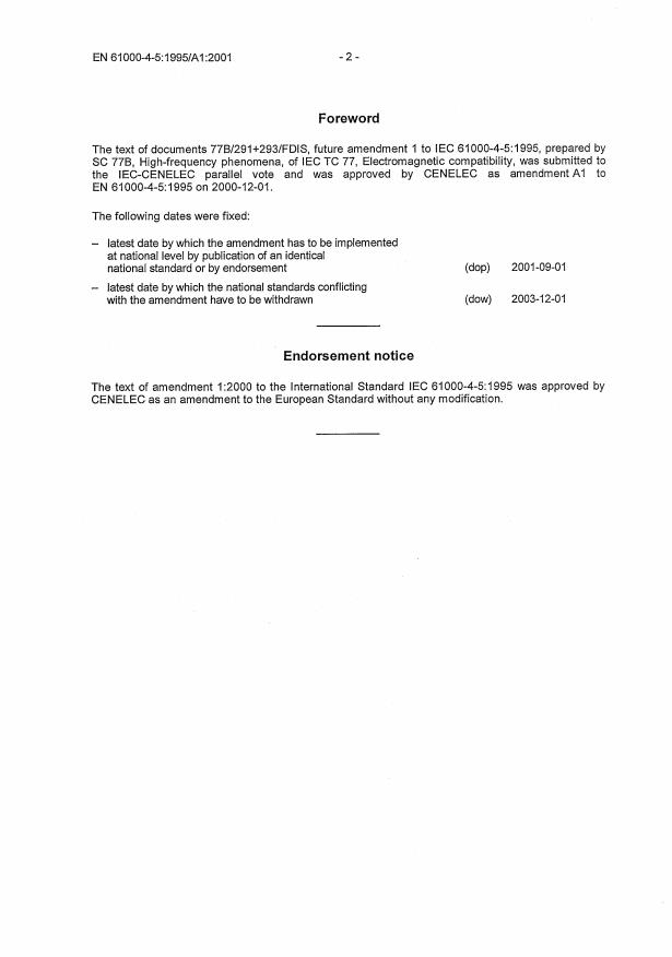 Electromagnetic compatibility (EMC) – Part 4: Testing and measurement techniques – Section 5: Surge immunity tes - Amendment 1 (IEC 61000-4-5:1995/A1:2000)