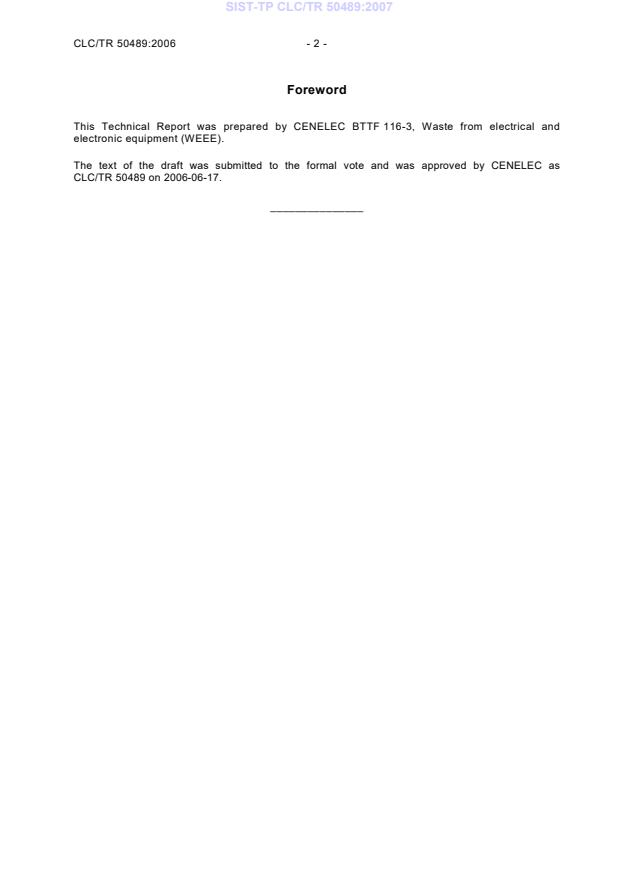 This Technical Report was prepared by CENELEC BTTF 116-3, Waste from electrical and