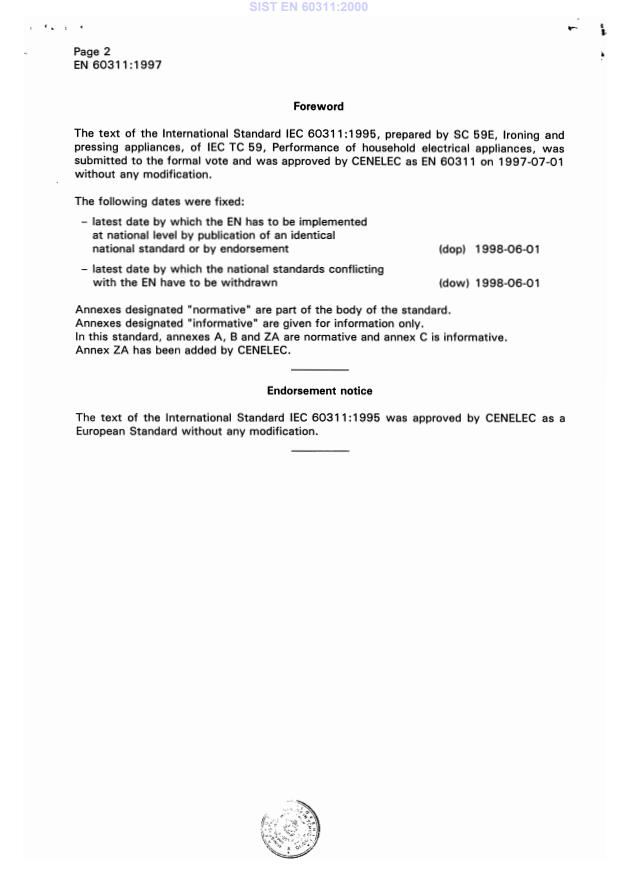EN 60311:2003 - Electric irons for household or similar use - Methods for measuring performance - Effective Date