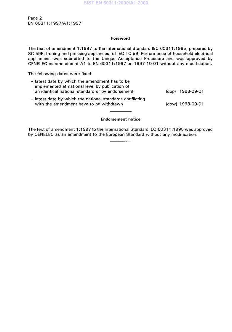 EN 60311:1997 - Electric irons for household or similar use - Methods for measuring performance - Effective Date