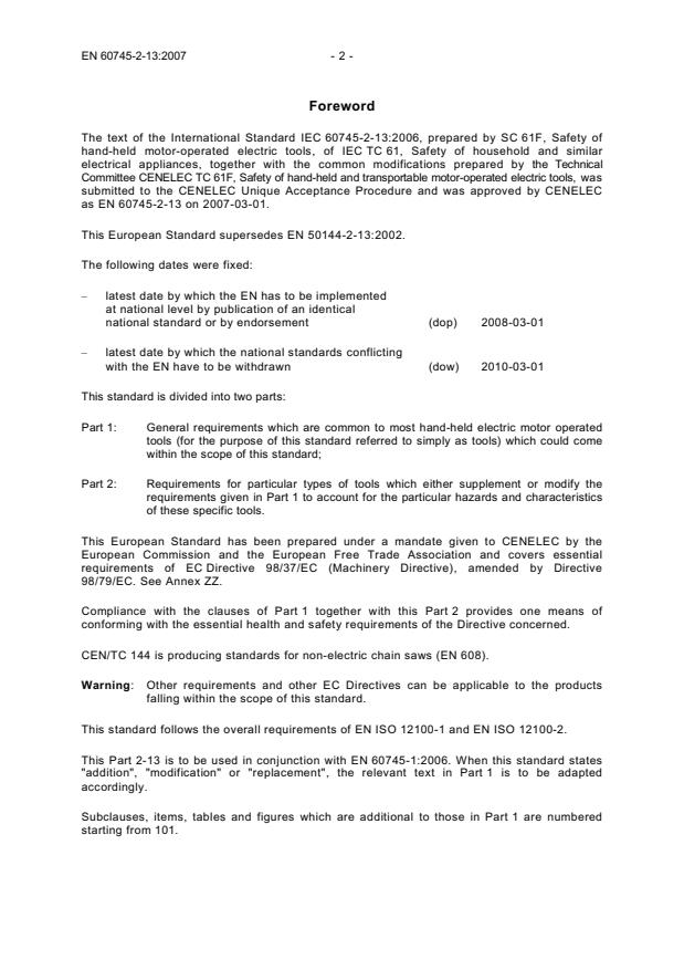 Ta slovenski standard je istoveten z: EN 60745-2-13:2007