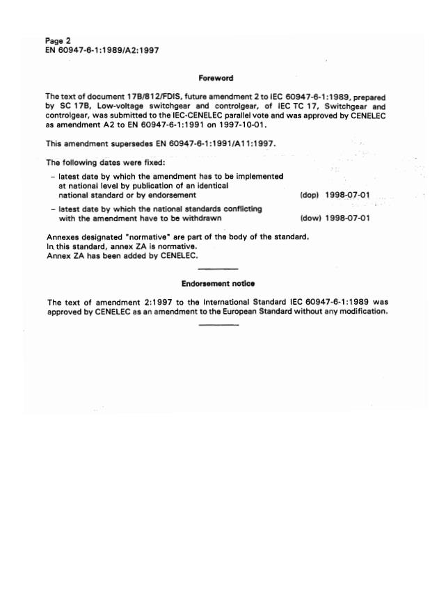 EN following parallel vote * Supersedes A11:1997 * Superseded by EN 60947-6-1:2005