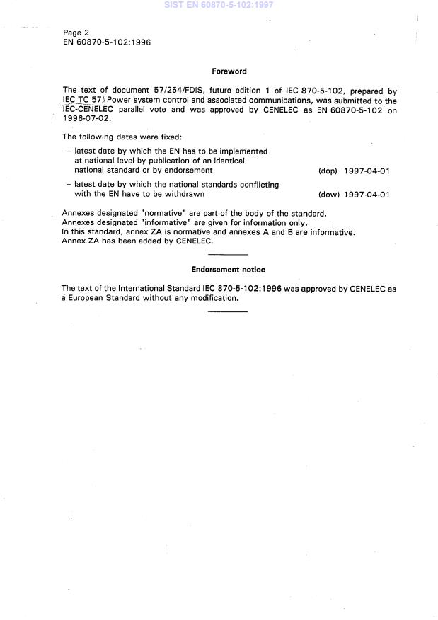 Ta slovenski standard je istoveten z: EN 60870-5-102:1996
