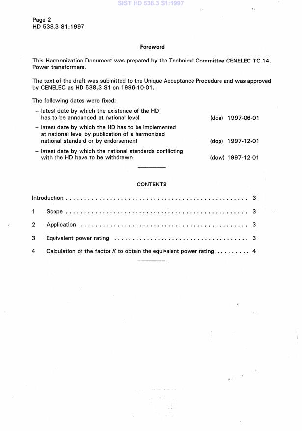 HD 538.3 S1:1997 is a standardization document published by CLC. Its full title is "Three-phase dry-type distribution transformers 50 Hz, from 100 to 2500 kVA, with highest voltage for equipment not exceeding 36 kV - Part 3: Determination of the power rating of a transformer loaded with non- sinusoidal current". This standard covers: This document gives to the user guidance to determine the loadability of a dry-type distribution transformer, as defined in and covered by HD 538 in the case of load current with harmonic factors exceeding the maximum values allowed.