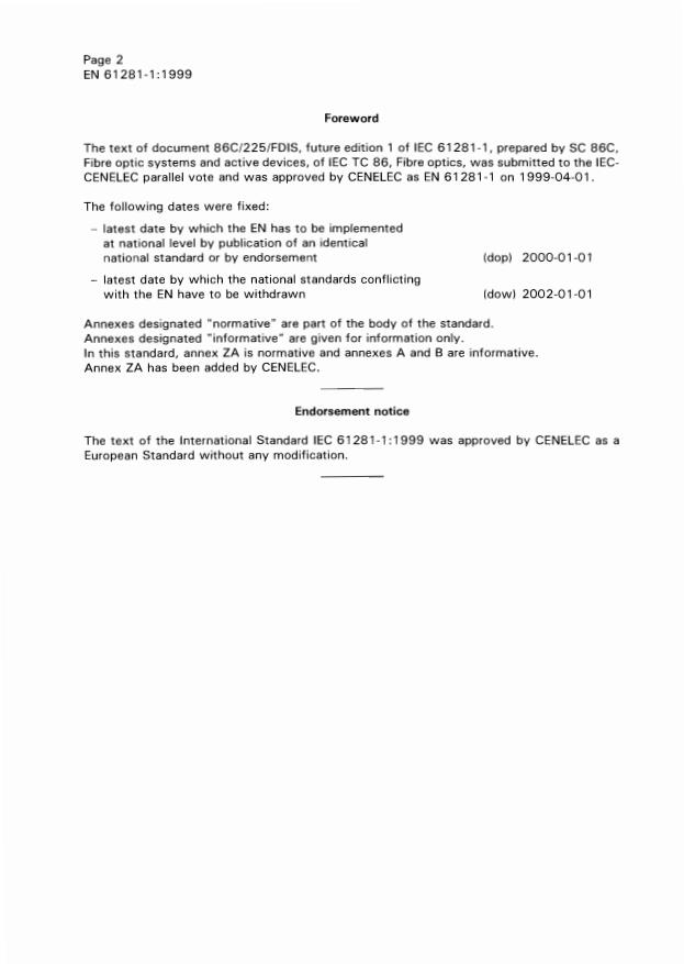 Fibre optic communication subsystems - Part 1: Generic specification (IEC 61281-1:1999)