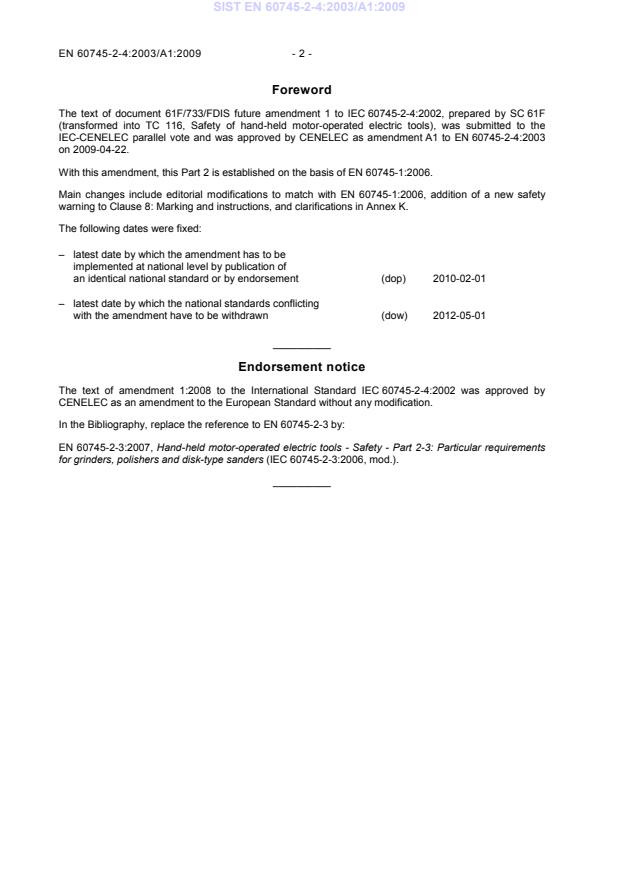 IEC-CENELEC parallel vote and was approved by CENELEC as amendment A1 to EN 60745-2-4:2003