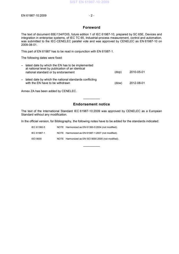 Ta slovenski standard je istoveten z: EN 61987-10:2009