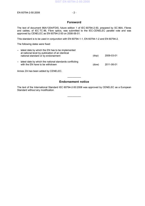 Ta slovenski standard je istoveten z: EN 60794-2-50:2008