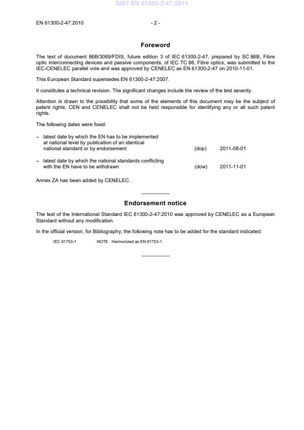 IEC-CENELEC parallel vote and was approved by CENELEC as EN 61300-2-47 on 2010-11-01.