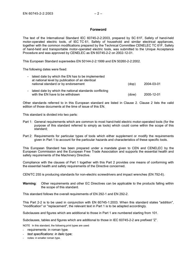 Procedure and was approved by CENELEC as EN 60745-2-2 on 2002-12-01.