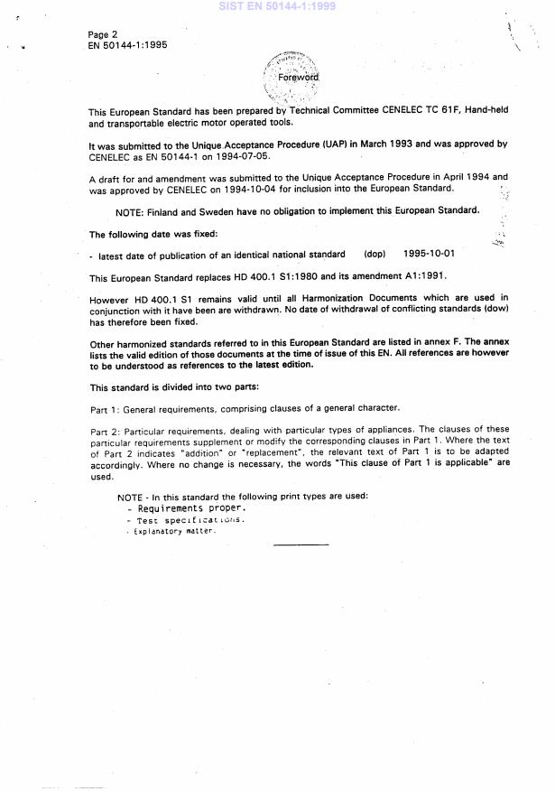Ta slovenski standard je istoveten z: EN 50144-1:1995