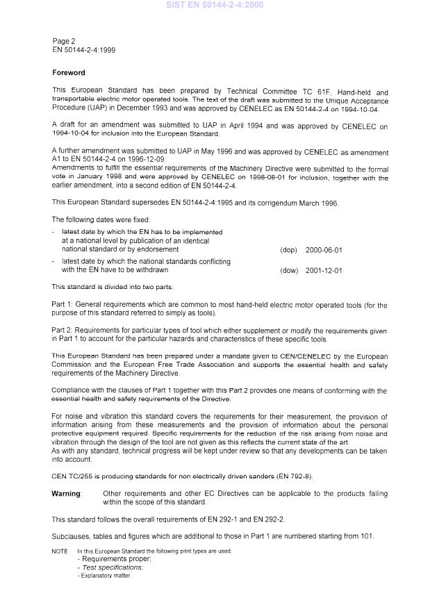 This clause of Part 1 is applicable execpt as follows: 1.1. Addition: This European Standard applies to hand-held reciprocating sanders, belt sanders orbital sanders and random orbital sanders. It does not apply to disc type sanders which are covered by EN 50144-2-3 (in preparation). This standard does not give requirements for the design of the tool for the reduction of the risk arising from noise and vibration.