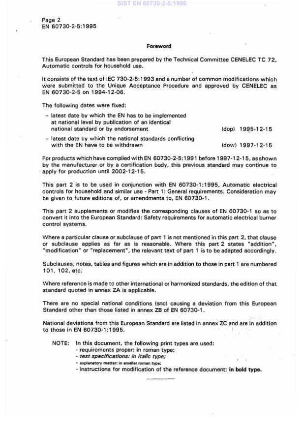 Automatic electrical controls for household and similar use - Part 2: Particular requirements for electrical controls for burner control systems (IEC 730-2-5:1993, modified)