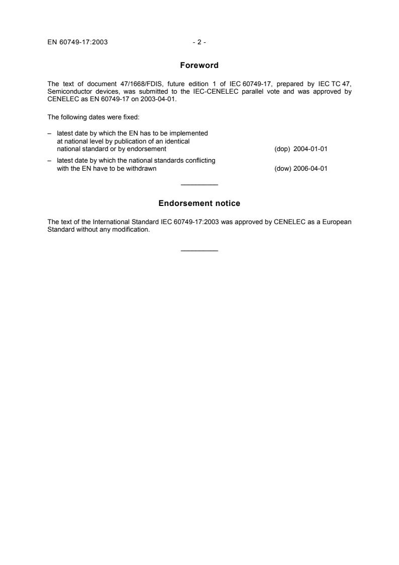 The text of the International Standard IEC 60749-17:2003 was approved by CENELEC as a European