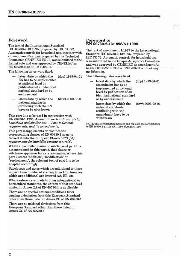 EN 60730-2-13:1998 has the following relationships with other standards: It is inter standard links to EN 60730-2-13:2008, EN 60730-2-13:1998/A1:1998, EN 60730-2-13:1998/A2:2002, EN 60730-2-13:1998/A11:2005. Understanding these relationships helps ensure you are using the most current and applicable version of the standard.