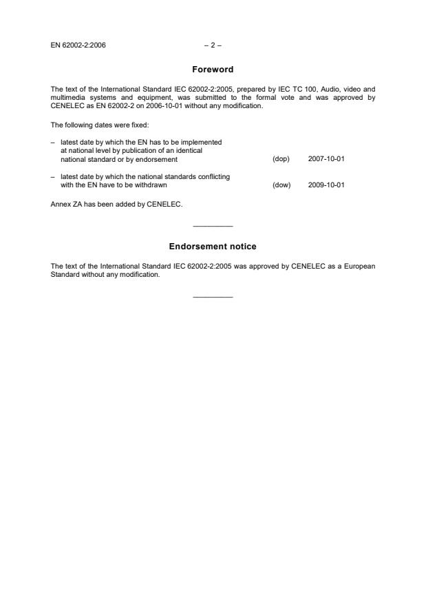 The text of the International Standard IEC 62002-2:2005, prepared by IEC TC 100, Audio, video and