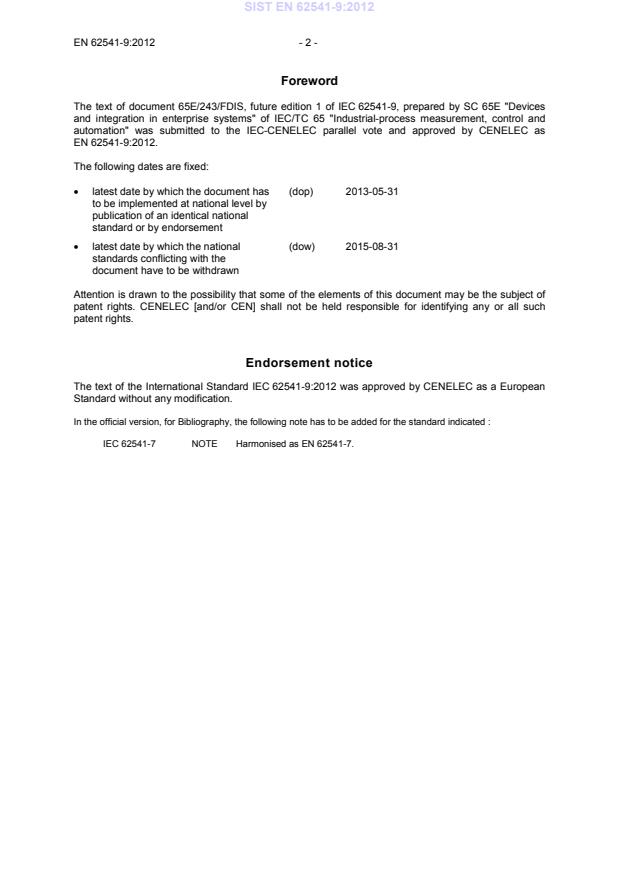 Endorsement notice The text of the International Standard IEC 62541-9:2012 was approved by CENELEC as a European Standard without any modification. In the official version, for Bibliography, the following note has to be added for the standard indicated :