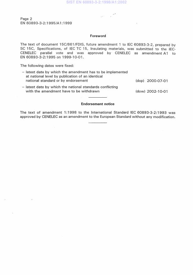 EN following parallel vote * Superseded by EN 60893-3-2:2004
