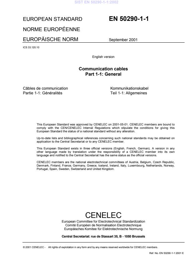 - 3 - EN 50290-1-1:2001