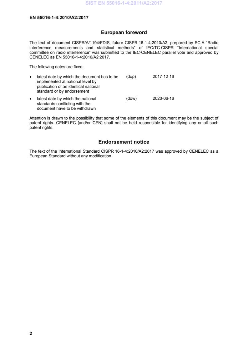 This amendment A2 modifies the European Standard EN 55016-1-4:2010; it was approved by CENELEC on 2017-02-23. CENELEC
