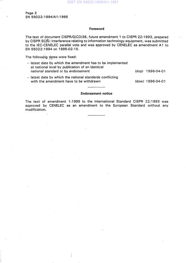 EN following parallel vote * Corrigendum to EN/A1 issued August 1997 (new dow) * Superseded by EN 55022:1998 * Published under SC 210A disbanded by D115/098