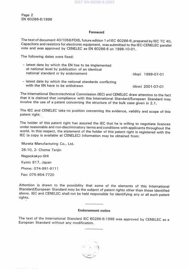 Ta slovenski standard je istoveten z: EN 60286-6:1998