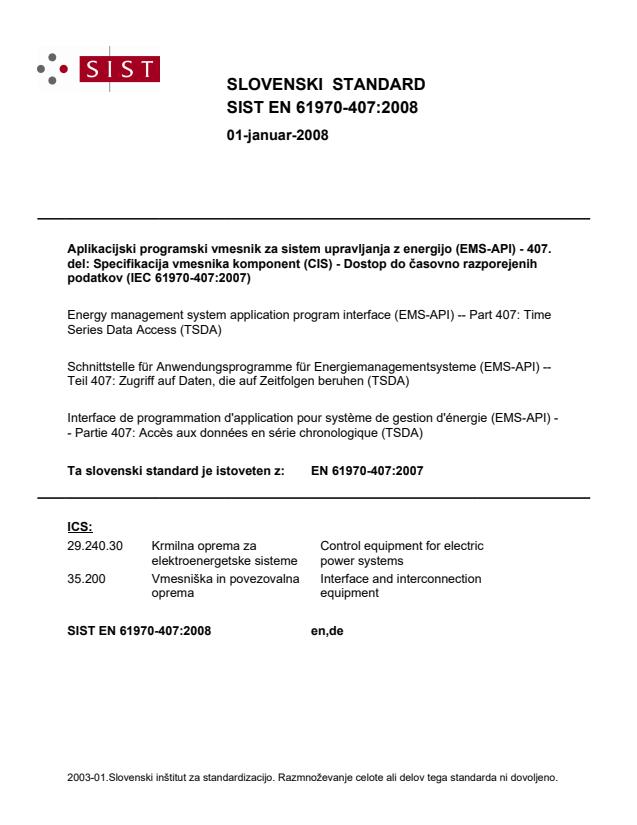 Ta slovenski standard je istoveten z: EN 61970-407:2007
