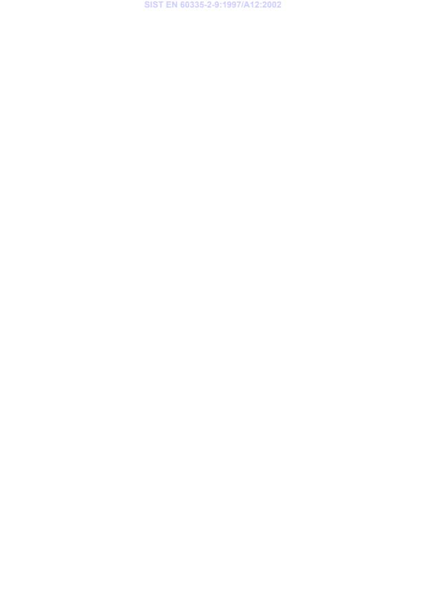 Ta slovenski standard je istoveten z: EN 60335-2-9:1995/A12:2002