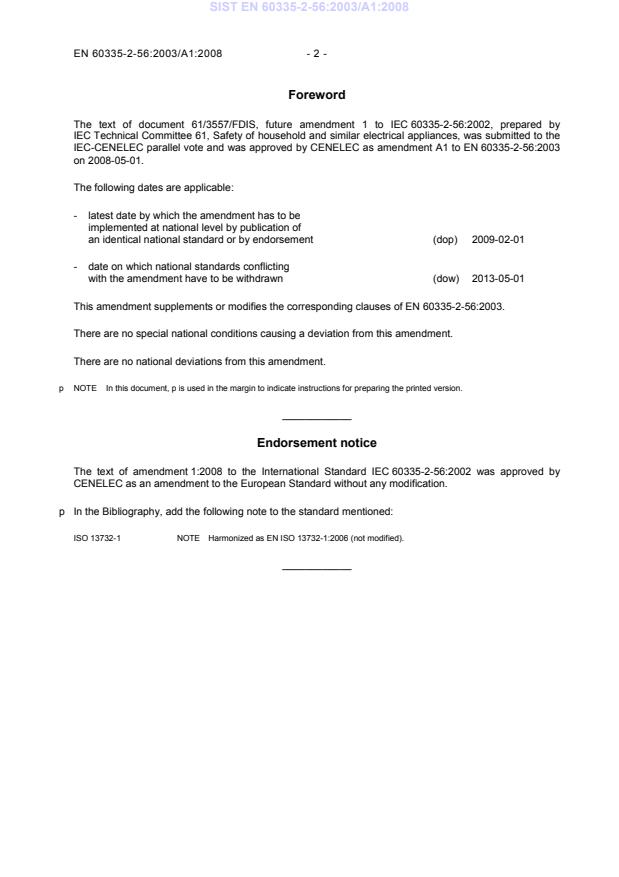 This amendment supplements or modifies the corresponding clauses of EN 60335-2-56:2003.