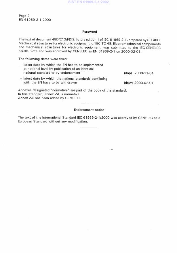 International Standard IEC 61969-2-1 has been prepared by subcommittee 48D: Mechanical